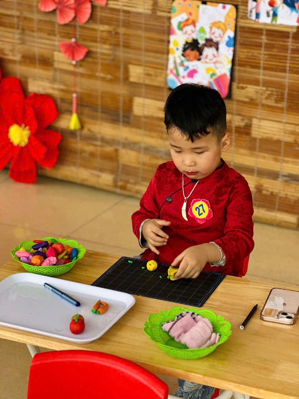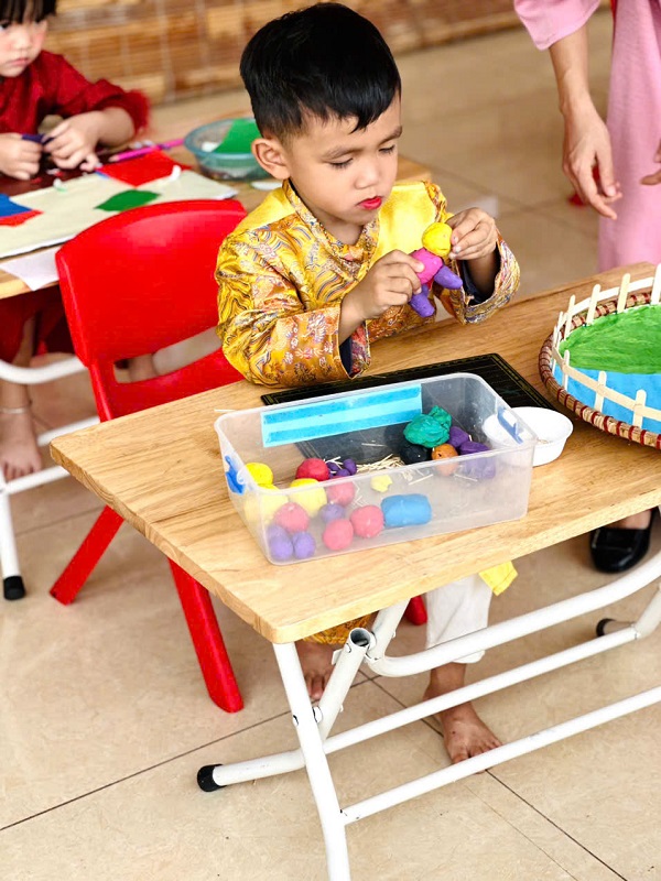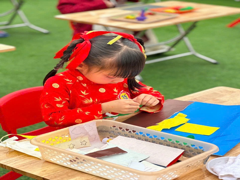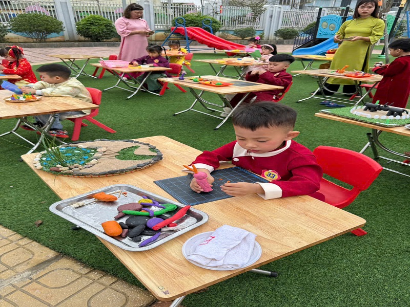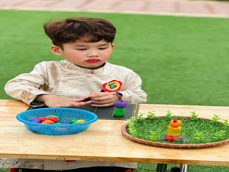 Hoạt động cô và trẻ gói bánh trưng nhân dịp Tết Nguyễn Đán 2026