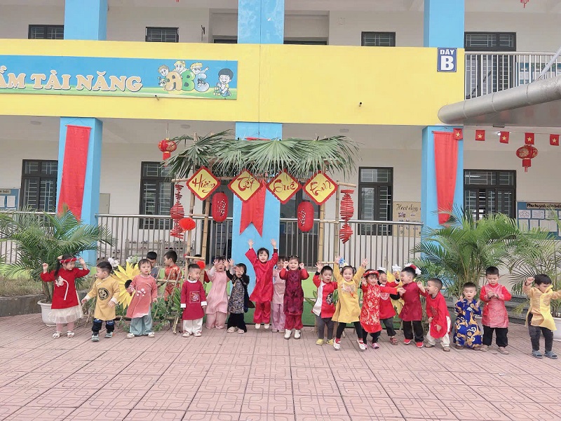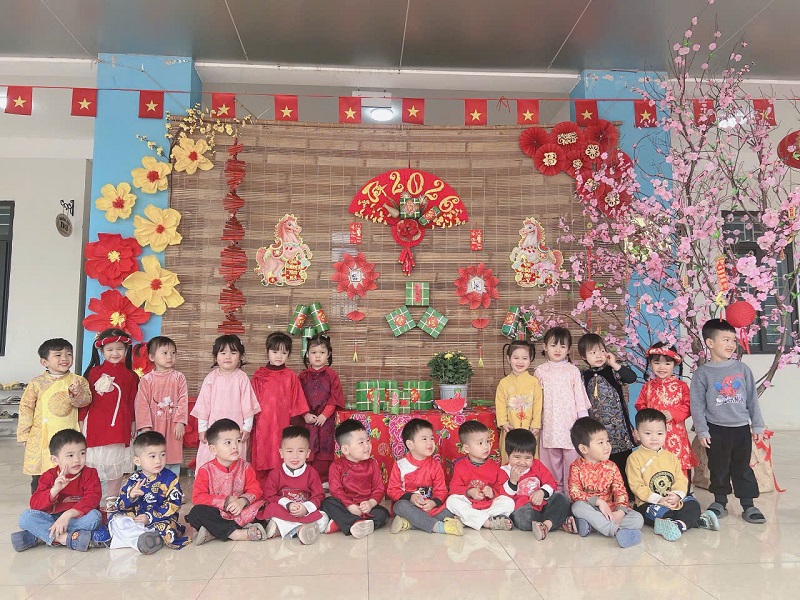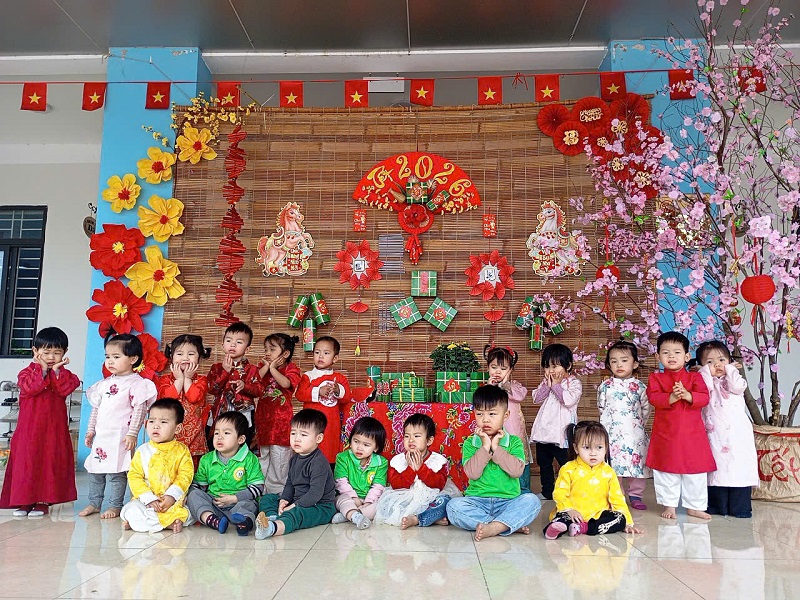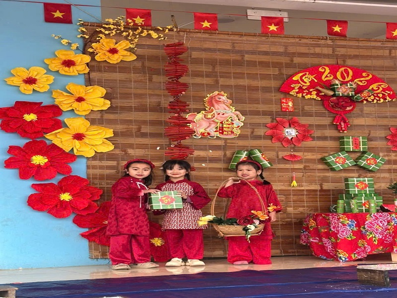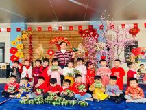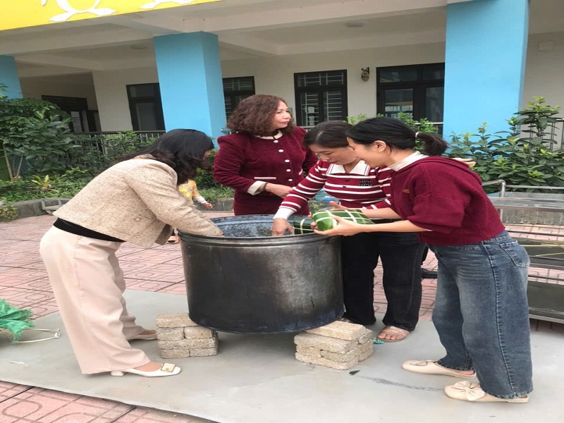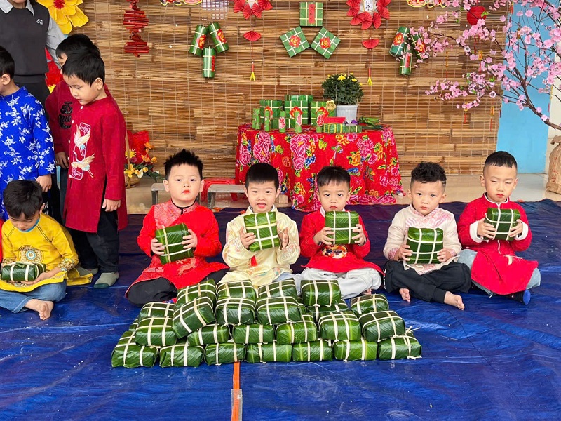 Hoạt động cô và trẻ gói bánh trưng nhân dịp Tết Nguyễn Đán 2026