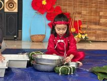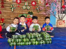 Hoạt động cô và trẻ gói bánh trưng nhân dịp Tết Nguyễn Đán 2026