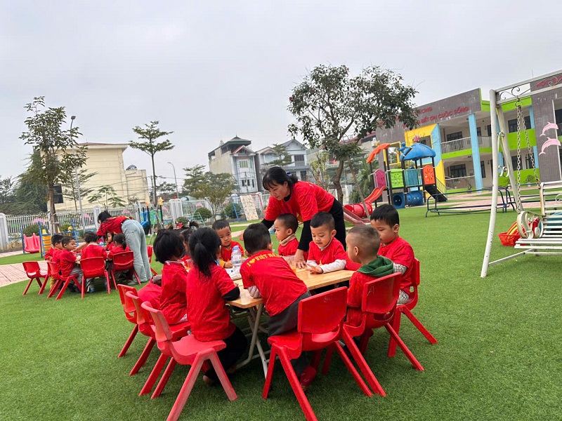 Trẻ tham gia tích cực, hứng thú với các hoạt động; cô giáo gần gũi, ân cần, biết động viên, khuyến khích trẻ kịp thời. Môi trường lớp học gọn gàng, an toàn, đồ dùng – đồ chơi được sử dụng hiệu quả.