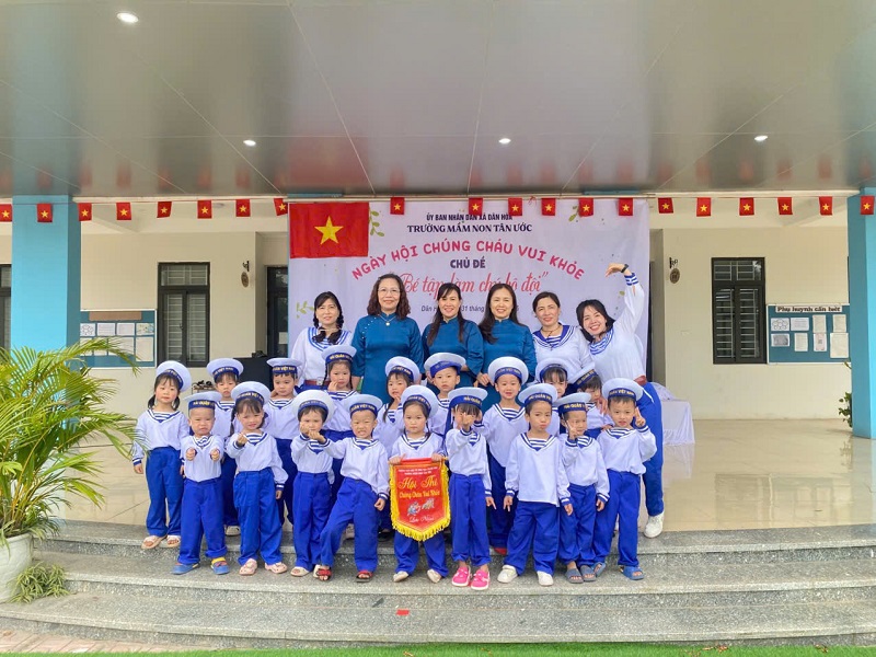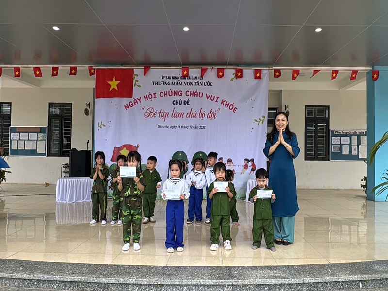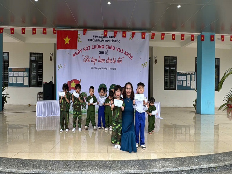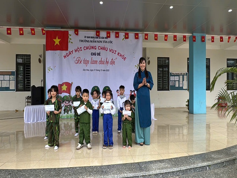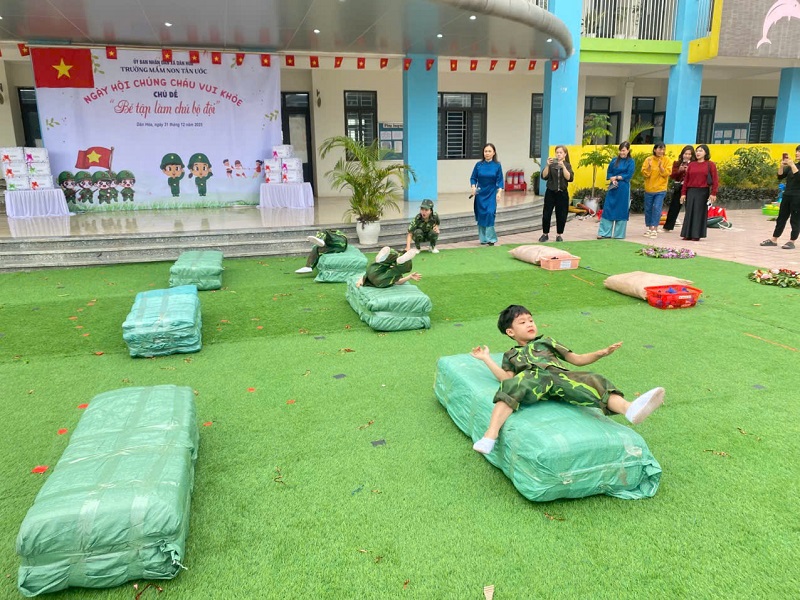 Ngày hội “Chúng cháu vui khỏe – Bé tập làm chú bộ đội” tại Trường Mầm non Tân Ước đã diễn ra trong không khí rộn ràng, ngập tràn tiếng cười của các bé.