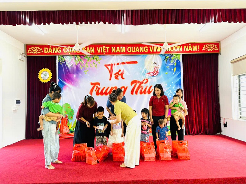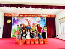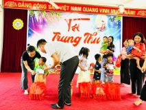 Hình ảnh BGH nhà trường kết hợp với Ban đại diện CMHS tặng quà các cháu có hoàn cảnh khó khăn nhân dịp Tết Trung thu 2025