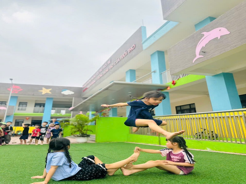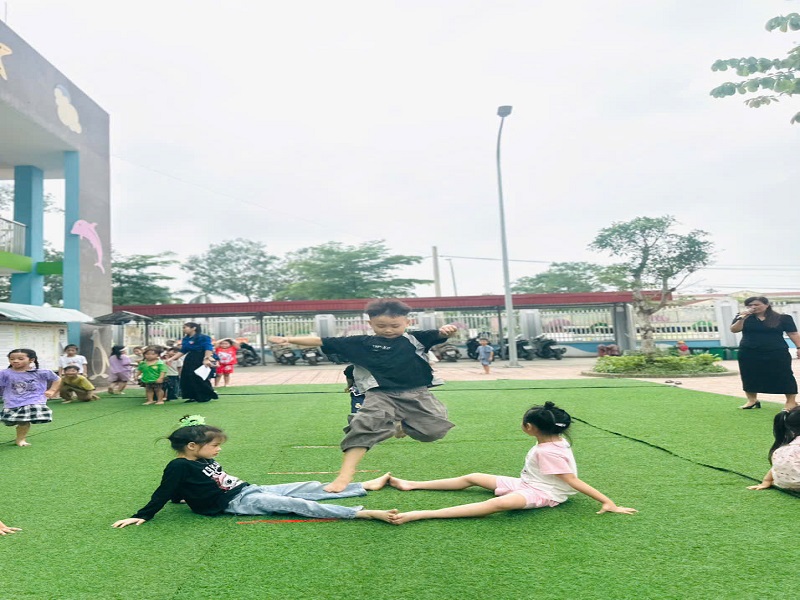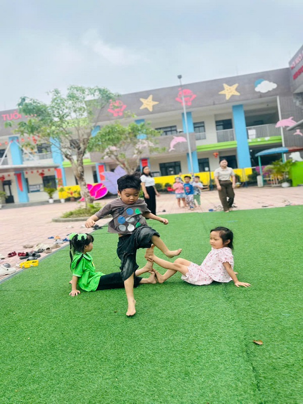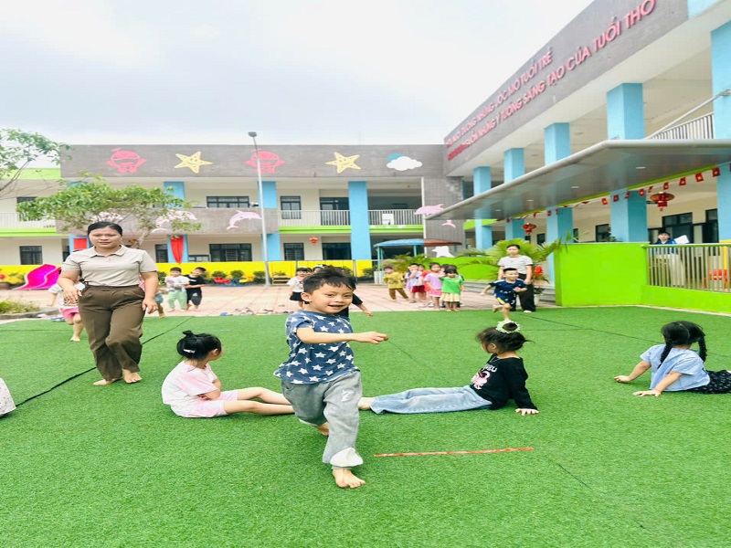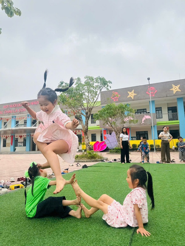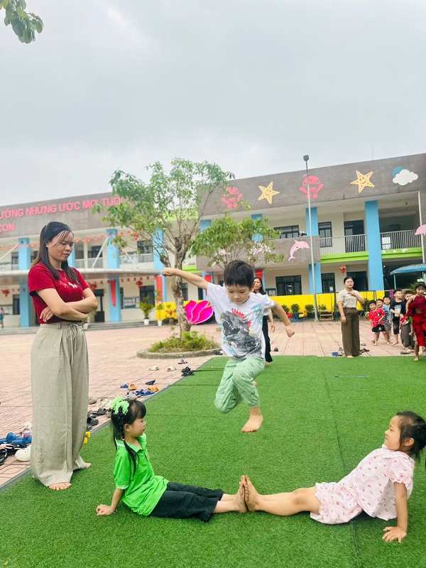 Hình ảnh các cô trong Ban Giám hiệu tham gia hoạt động cùng trẻ