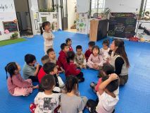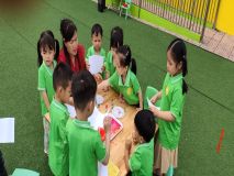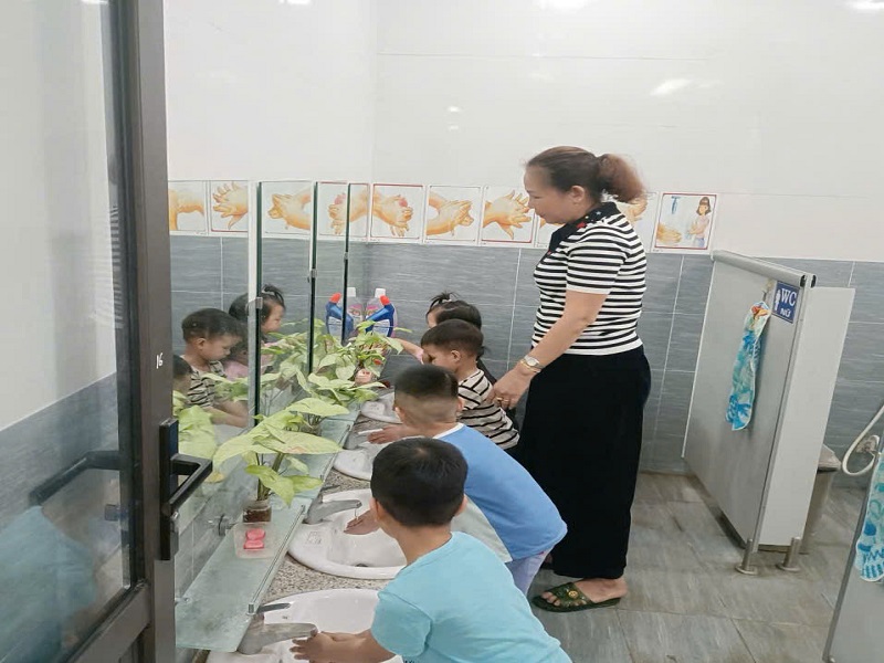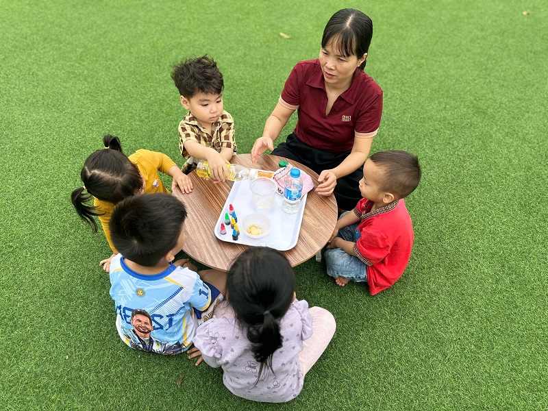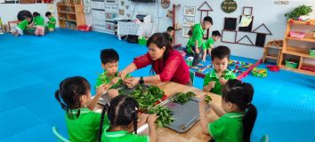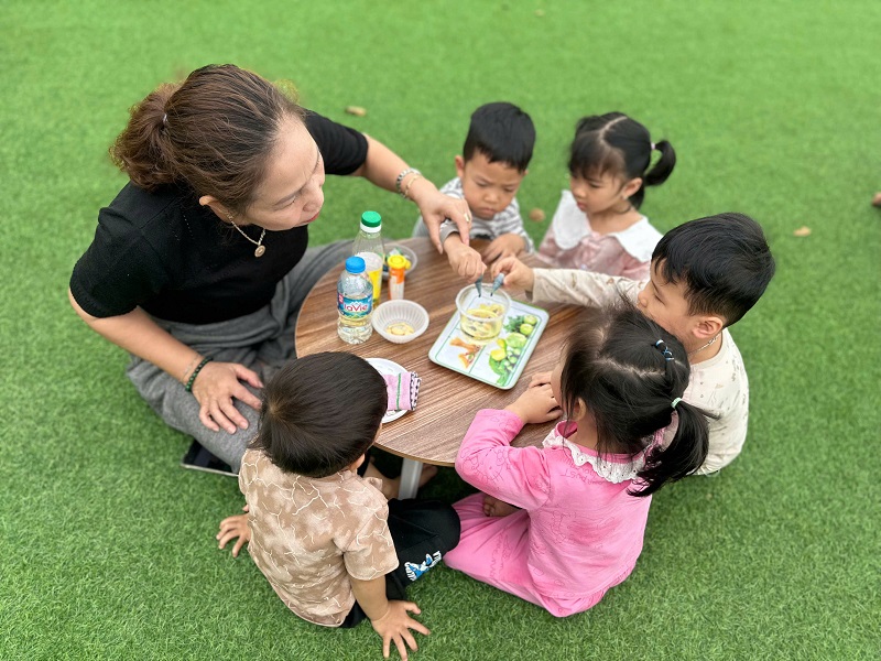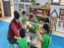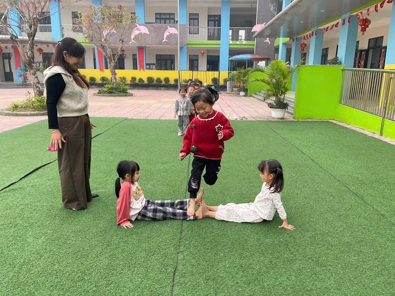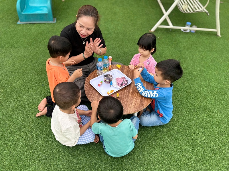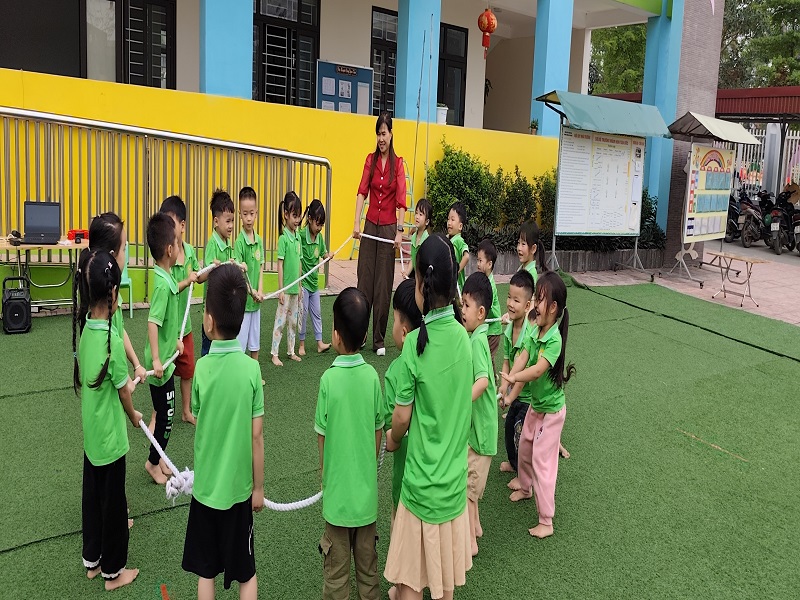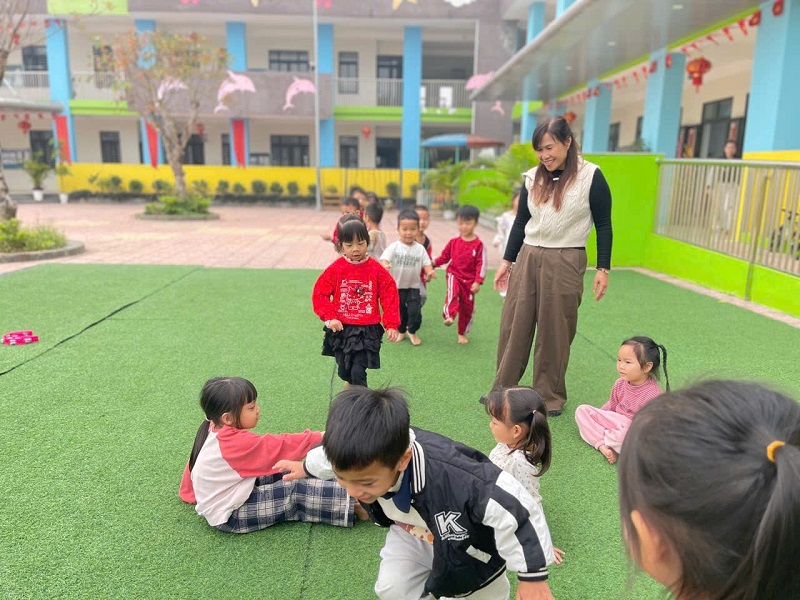 Hình ảnh các cô trong Ban Giám hiệu tham gia hoạt động cùng trẻ