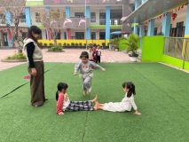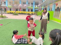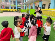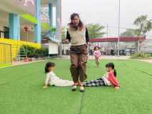 Hình ảnh các cô trong Ban Giám hiệu tham gia hoạt động cùng trẻ