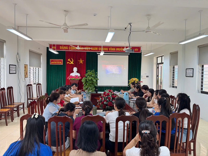 Chi bộ trường Mầm non Tân Ước tổ chức tham gia học tập Nghị quyết số 02-NQ/TW
