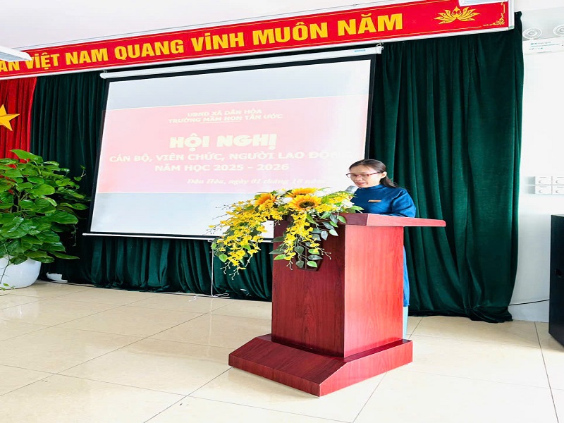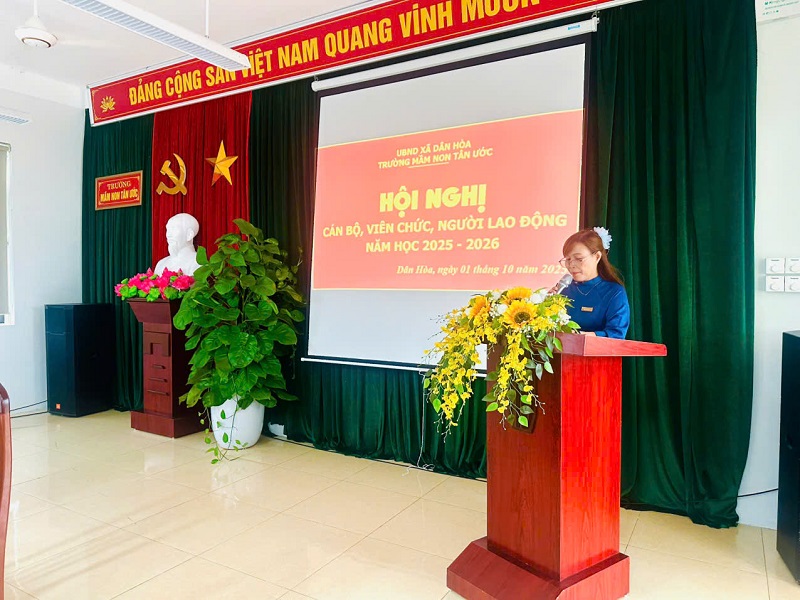 ✨ Thực hiện nhiệm vụ năm học 2025-2026 và nhằm phát huy tinh thần dân chủ trong nhà trường. Sáng ngày 01/10/2025, Trường Mầm non Tân Ước đã long trọng tổ chức Hội nghị cán bộ, viên chức, người lao động.